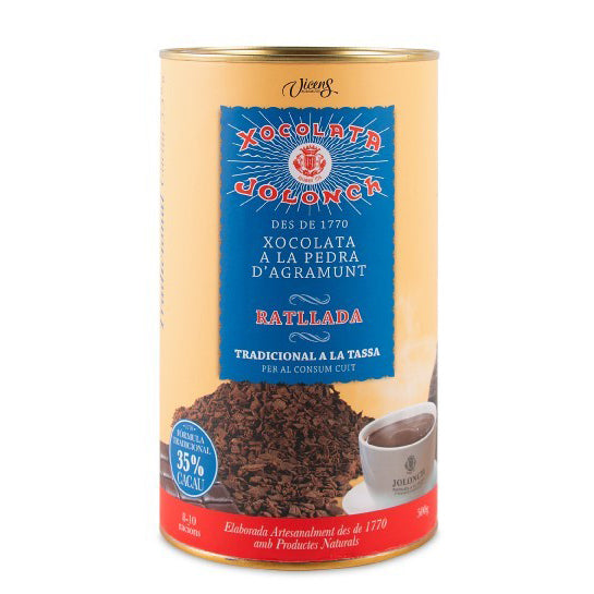 Traditional and delicious Jolonch Chocolate a la Piedra, carefully grated and ready to prepare. Enjoy your special moment with all the flavour of a good artisan chocolate in a cup.